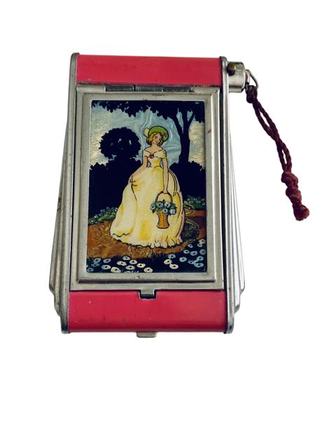 Art Deco 1930s Gwenda Foil Backed Picture Camera Case Powder Compact / Vanity Case with Lipstick