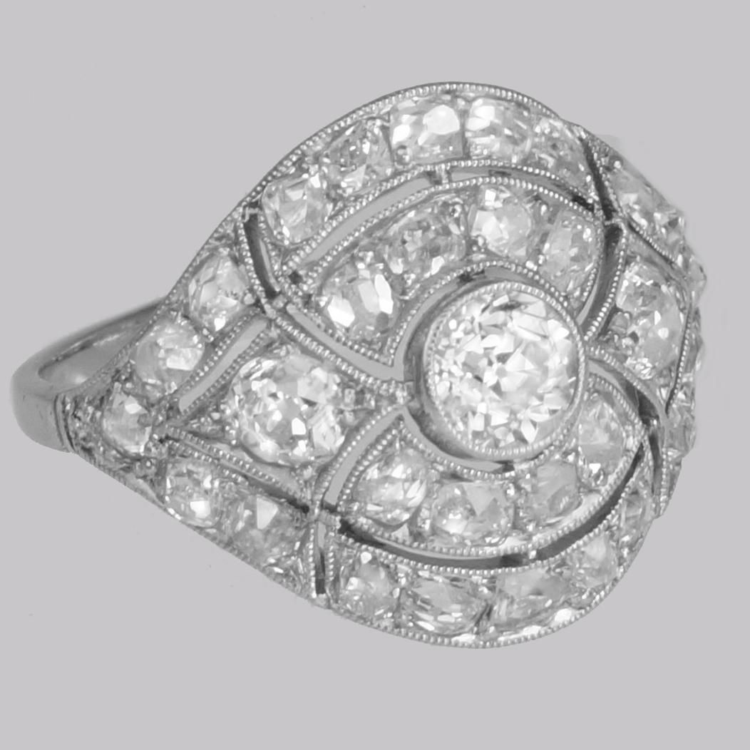 Art Deco 2.5ct Old Cut Diamond Platinum Original 1920's Large Cluster Bombé Ring