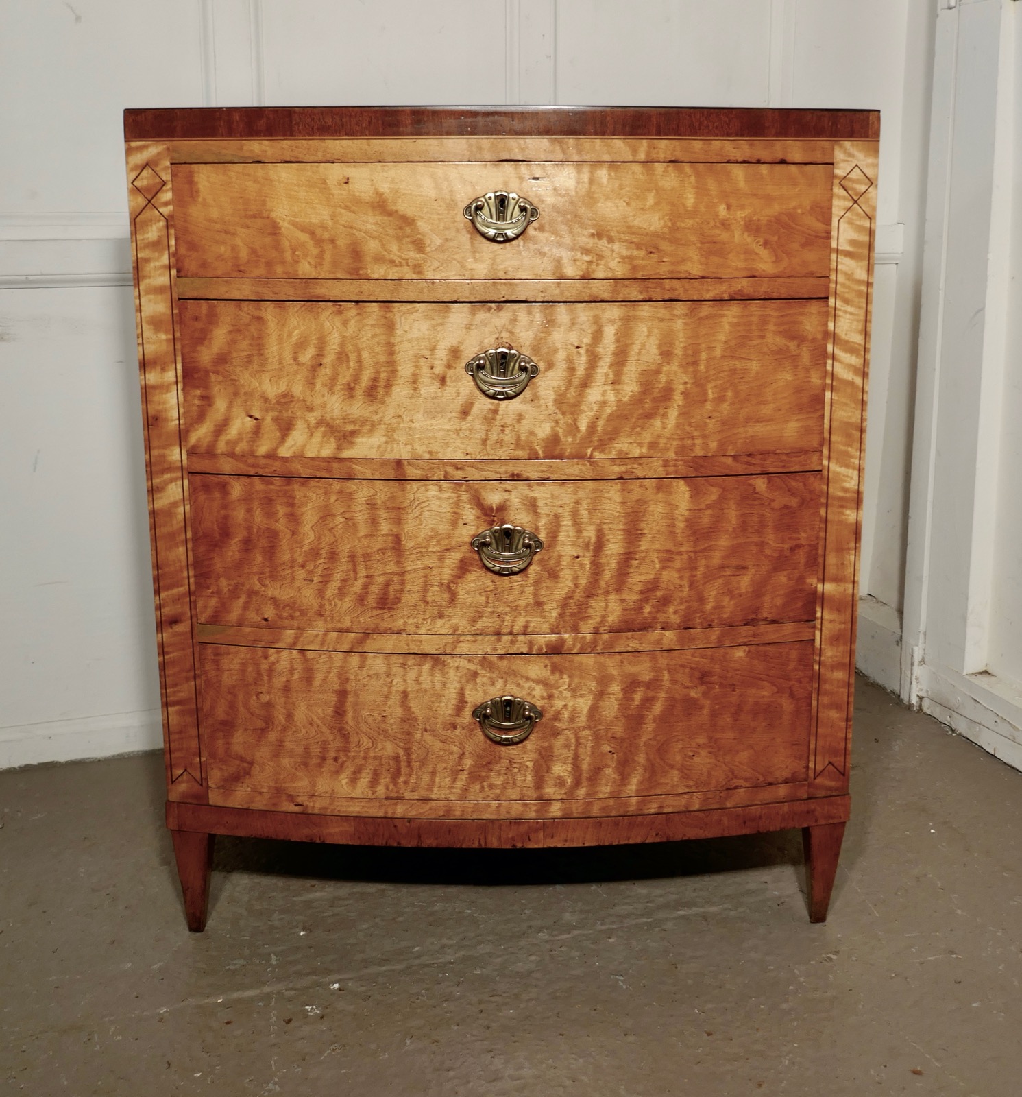 Art Deco 4 Drawer Bow Front Chest of Drawers in Bird’s Eye Maple