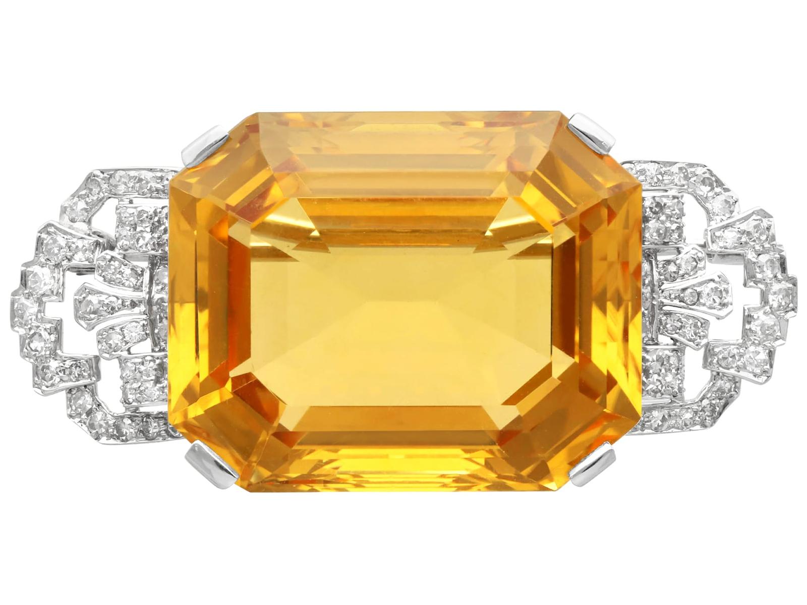 Art Deco 77.42ct Citrine & 1.16ct Diamond Platinum Brooch c.1935 (1 of 10)