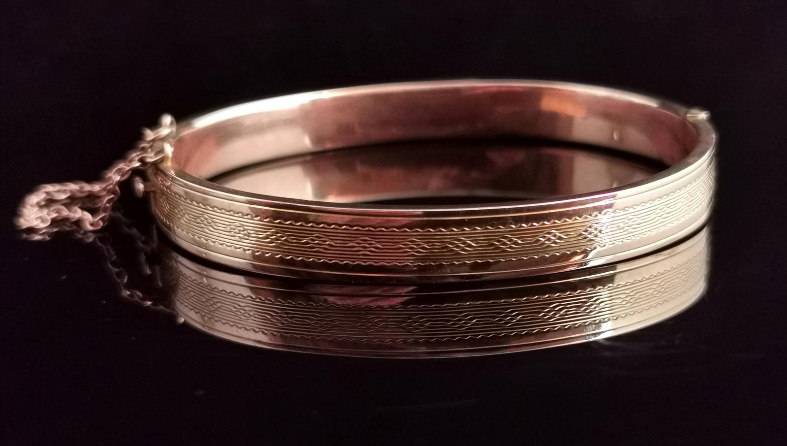 Art Deco 9ct Rose Gold Bangle, Engine Turned
