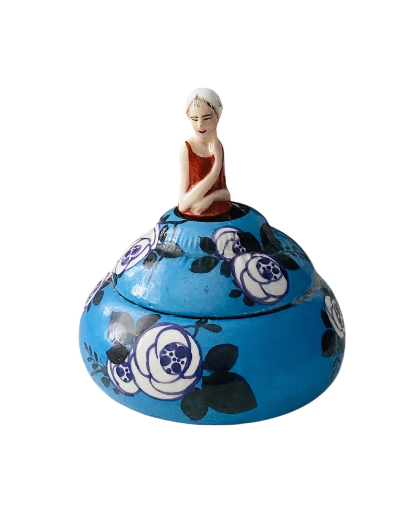 Art Deco German Crown Top Perfume Scent Bottle Enamel & Edelweiss Silver Overlay Circa 1930