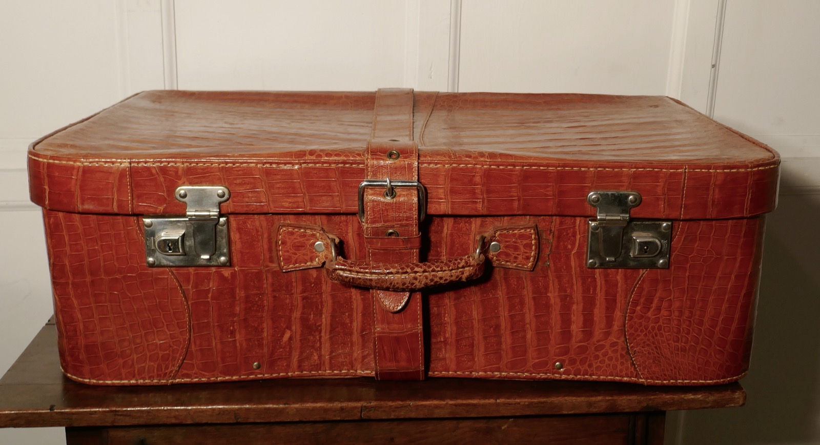 Art Deco American Crocodile Leather Suitcase by Pedro Diazsa