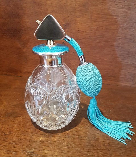 Art Deco Antique Silver & Turquoise Enamel Scent Atomizer