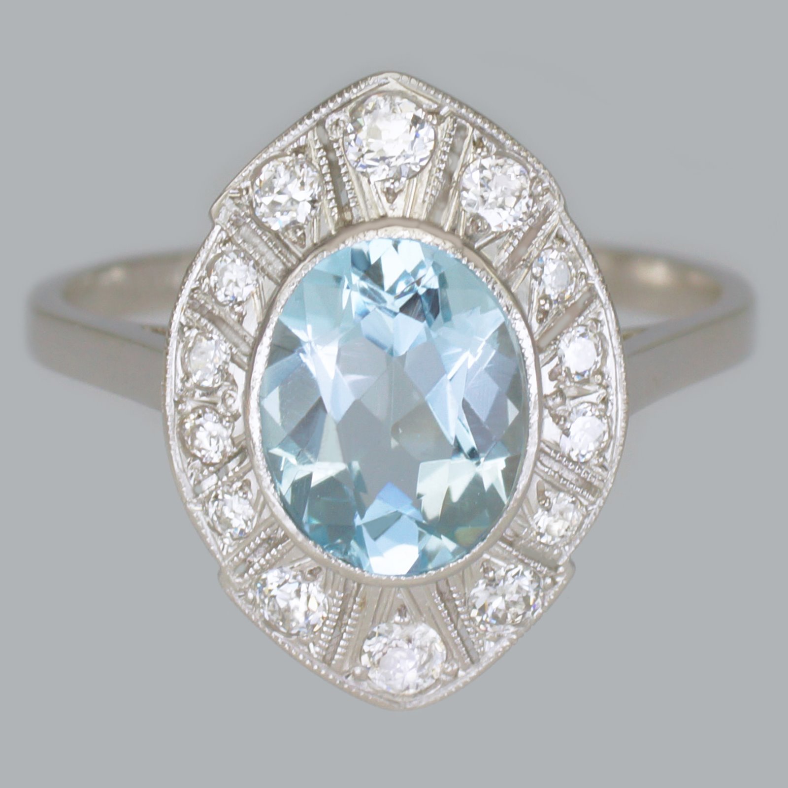 Art Deco Aquamarine & Diamond Platinum Ring Authentic 1920s Antique Dress Ring (1 of 1)