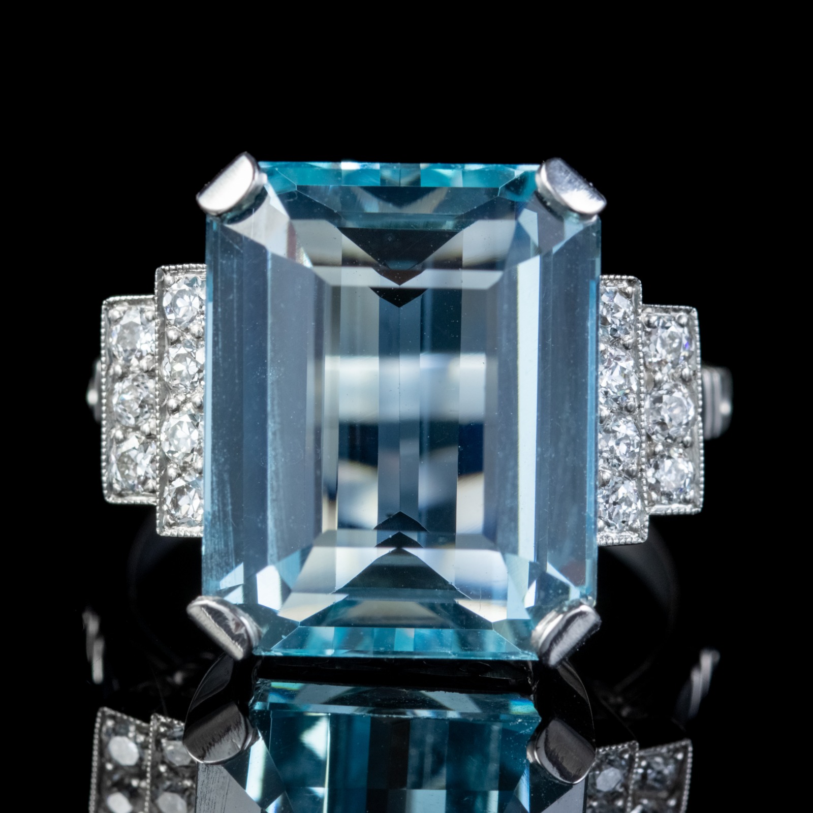 Art Deco Aquamarine Diamond Ring Platinum 13.17ct Emerald Cut Aqua c.1920