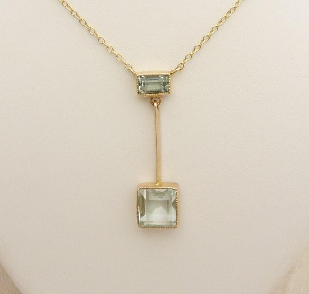 Art Deco Aquamarine Set Drop Necklace Marked 9ct