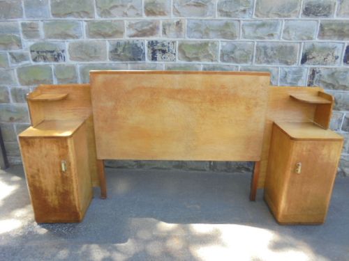 Art Deco Birds Eye Maple Bedside Cabinets & Headboard