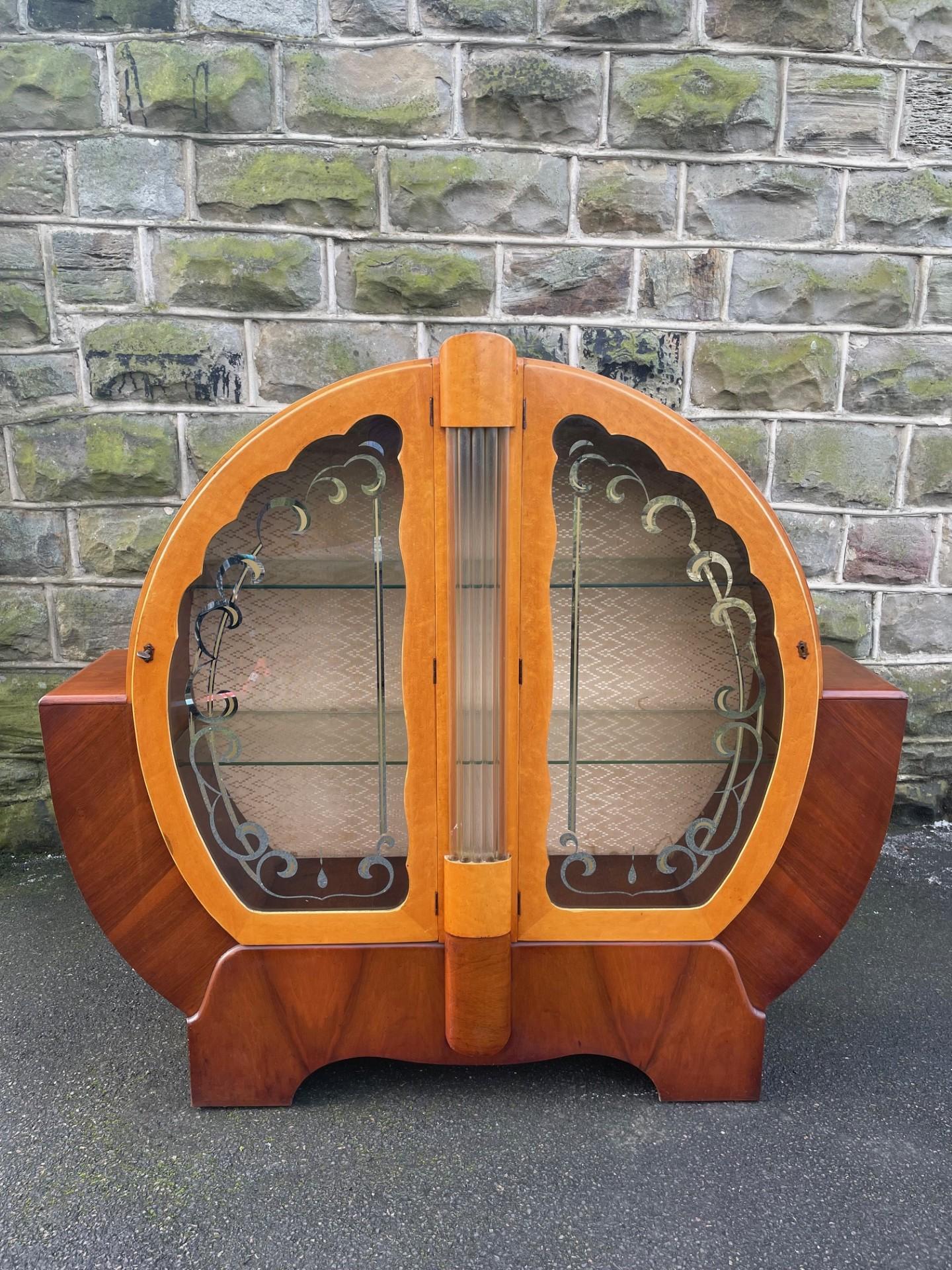 Art Deco Birds Eye Maple & Walnut Display Cabinet