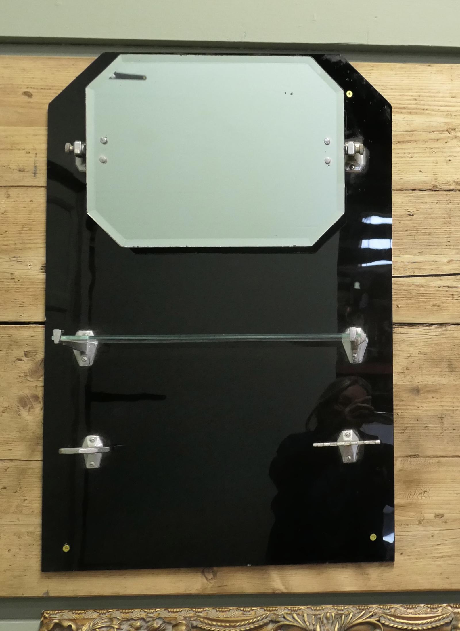 Art Deco Black Glass and Chrome Bathroom Mirror
