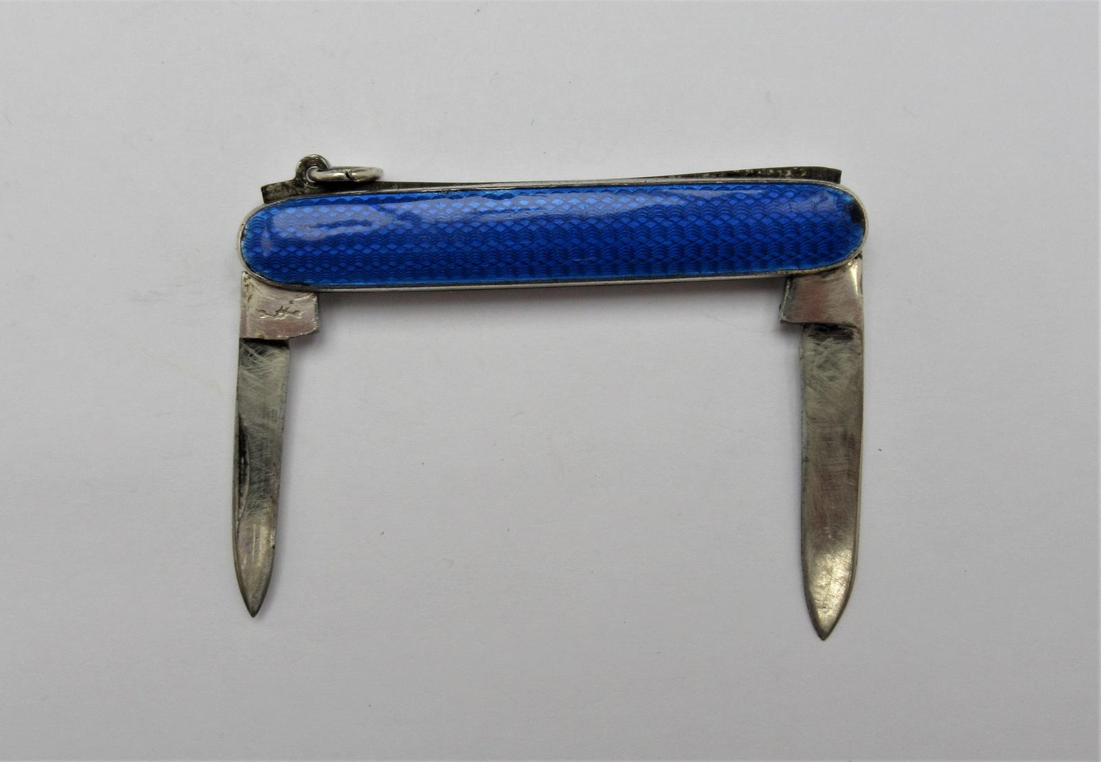 Art Deco, Blue Enamel Double Folding Fob Pen Knife