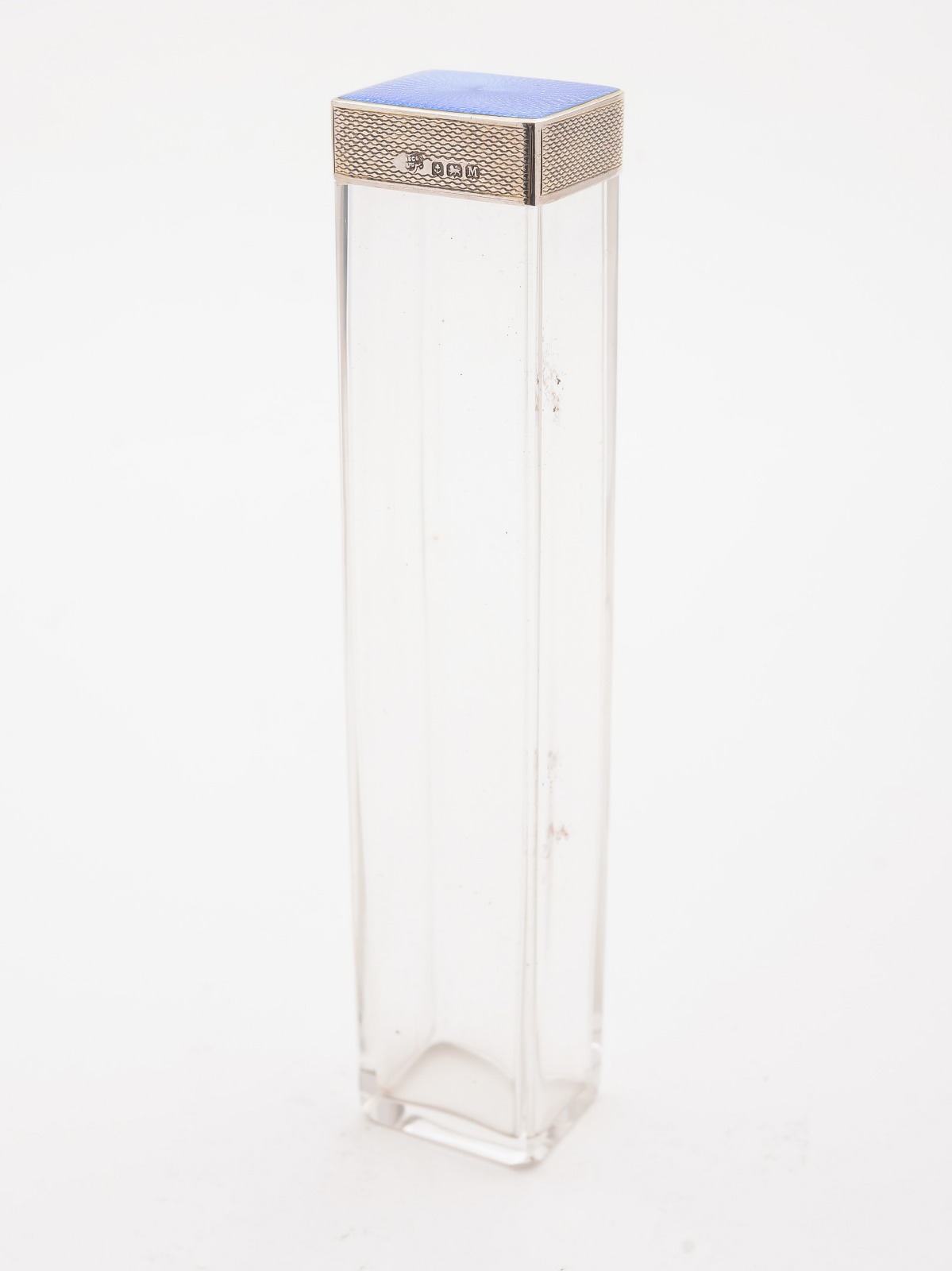 Art Deco Blue Guilloche Enamel-Topped Oblong Box