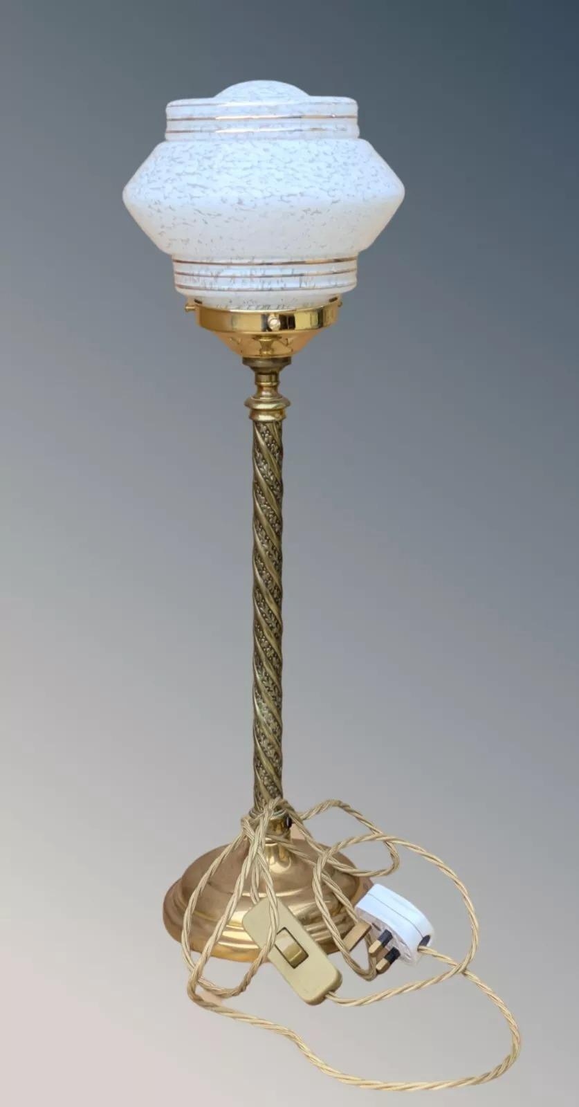 Art Deco Brass Column Lamp Glass Shade (1 of 6)