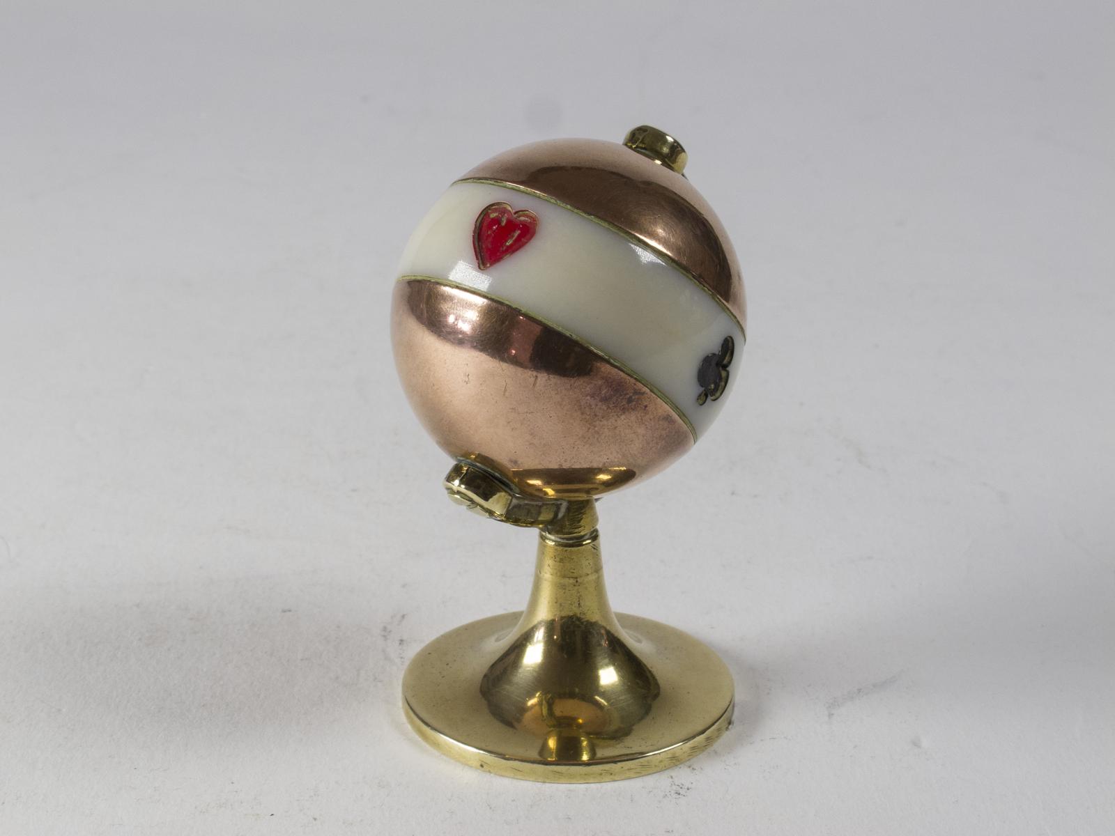 Art Deco Brass & Copper Globe Shaped Bridge or Whist Trumps Marker