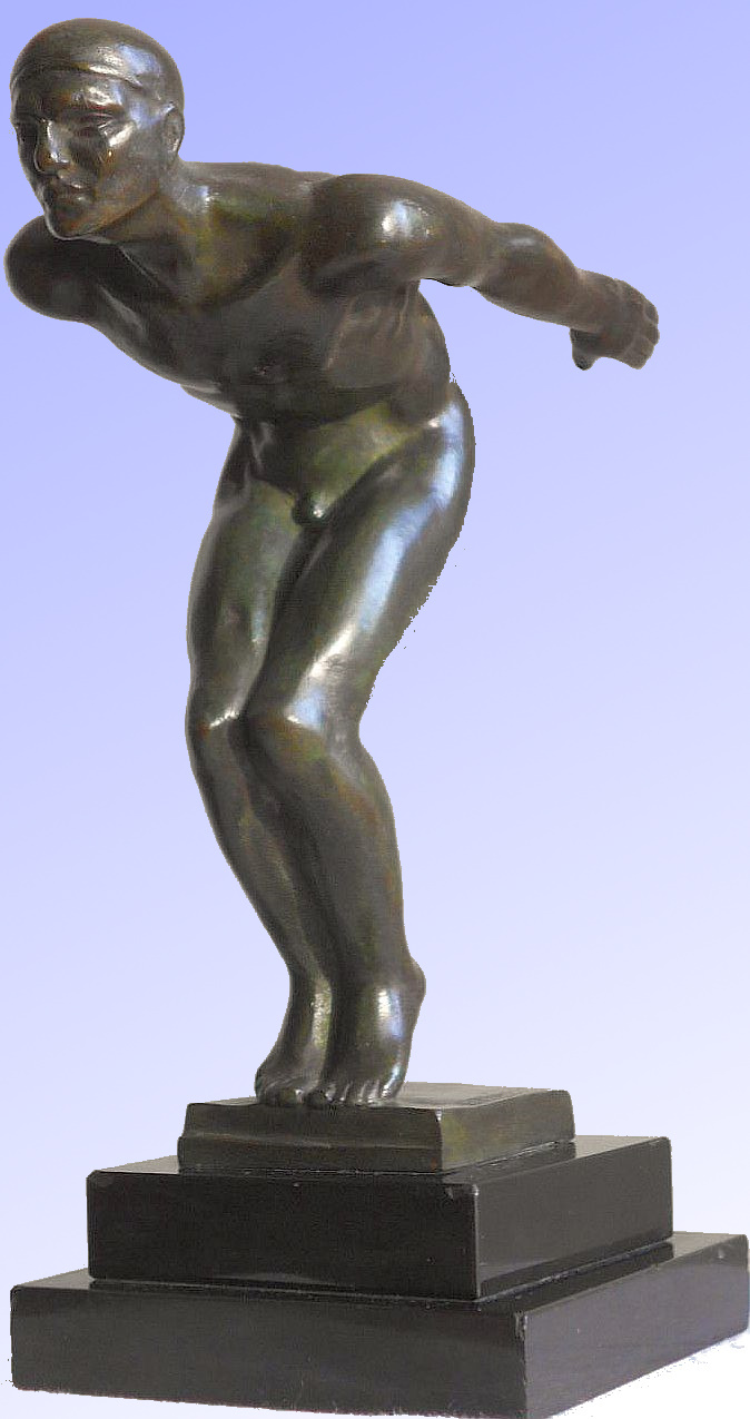 Art Deco Bronze Diving Swimmer by Edouard Fraisse