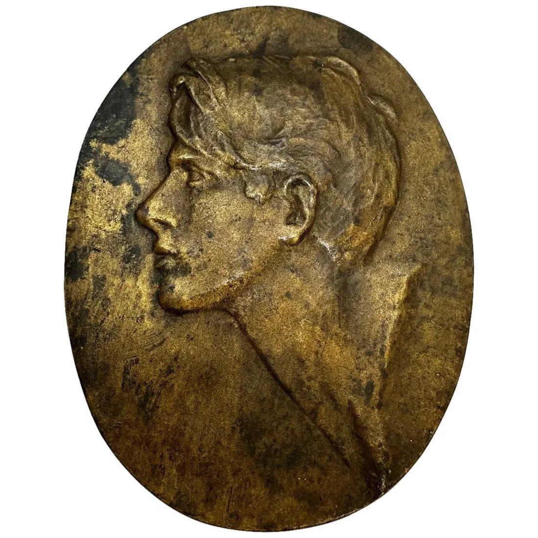 Art Deco Bronze Low Relief Young Man Portrait Plaque Sculpture