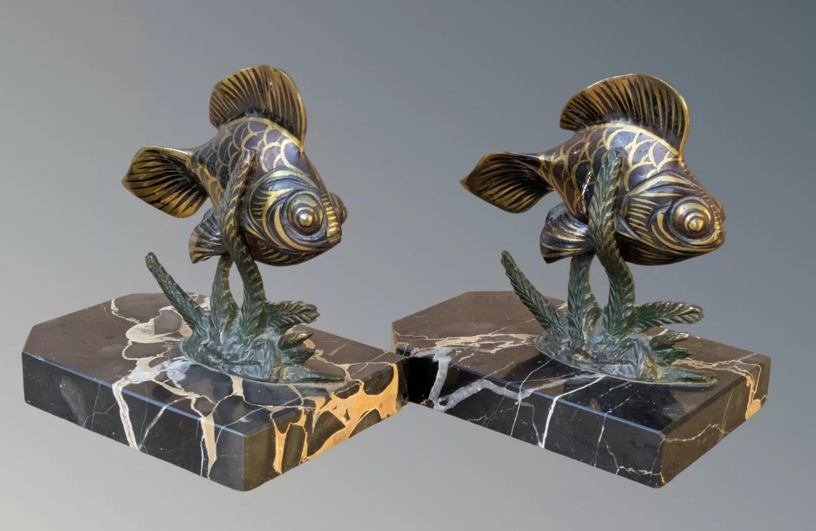 Art Deco Bronze & Marble Tropical Fish Bookends (1 of 7)