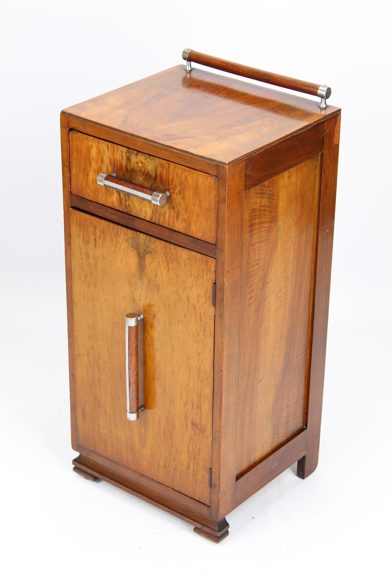 Art Deco Burr Walnut Bedside Cabinet / Side Cupboard