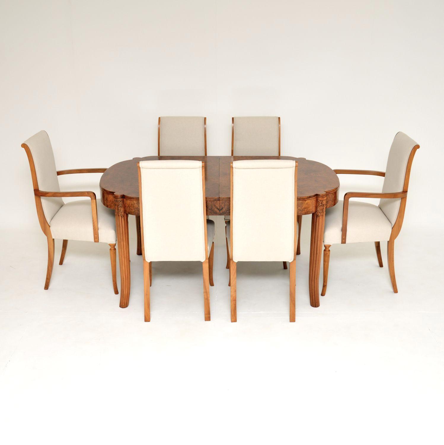 Art Deco Burr Walnut Dining Table & Chairs by Hille