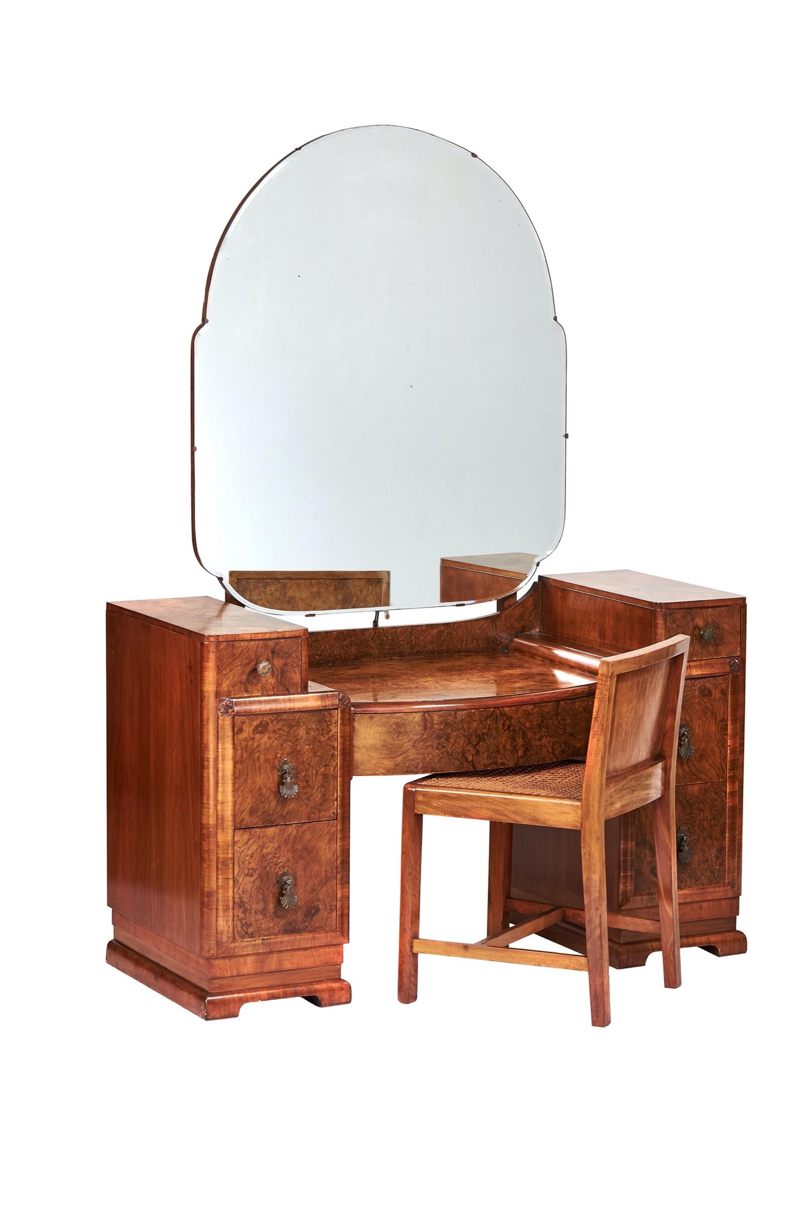 Art Deco Burr Walnut Dressing Table & Stool c.1930