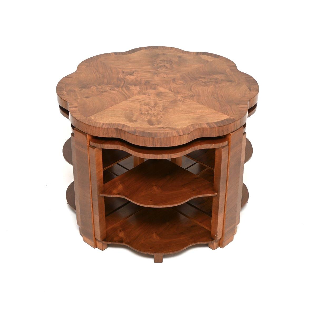 This Art Deco Burr Walnut Nesting Coffee Table is located in Greater London, United Kingdom