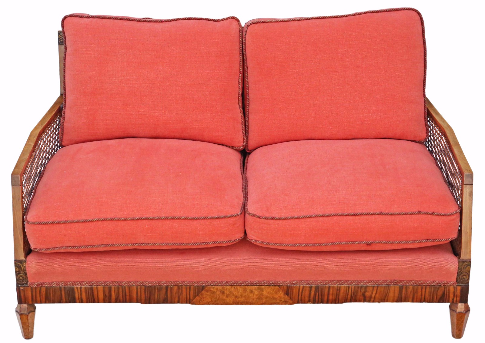 Art Deco Burr Walnut & Rosewood Bergere Sofa c.1930