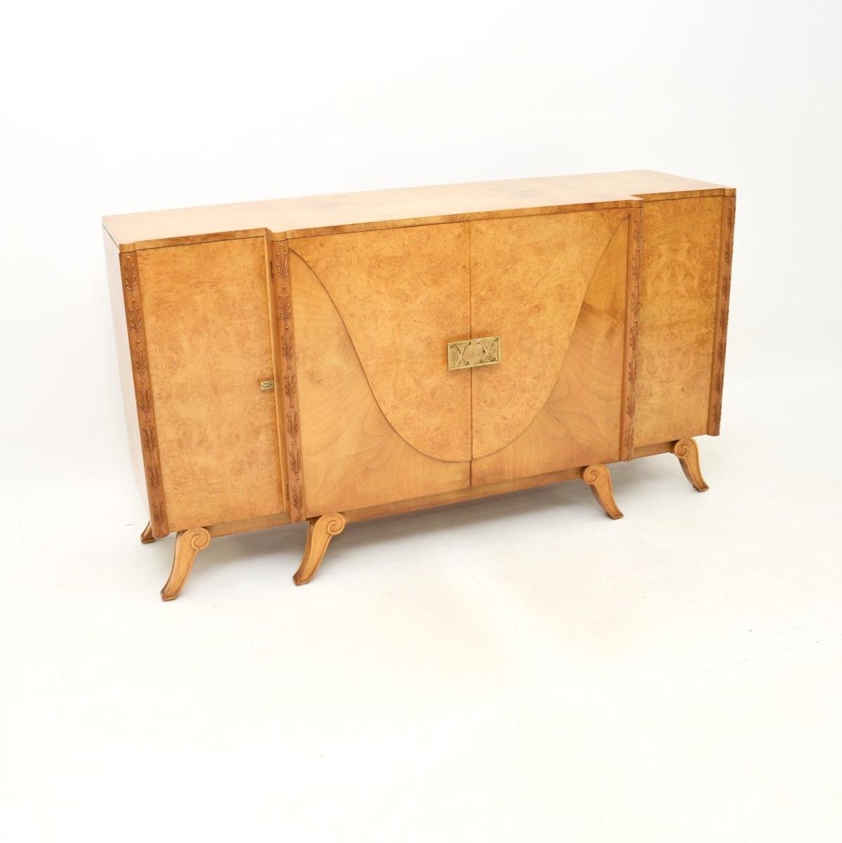 A magnificent Art Deco burr walnut sideboard by Hille. This was made in England, it dates from the 1920’s.