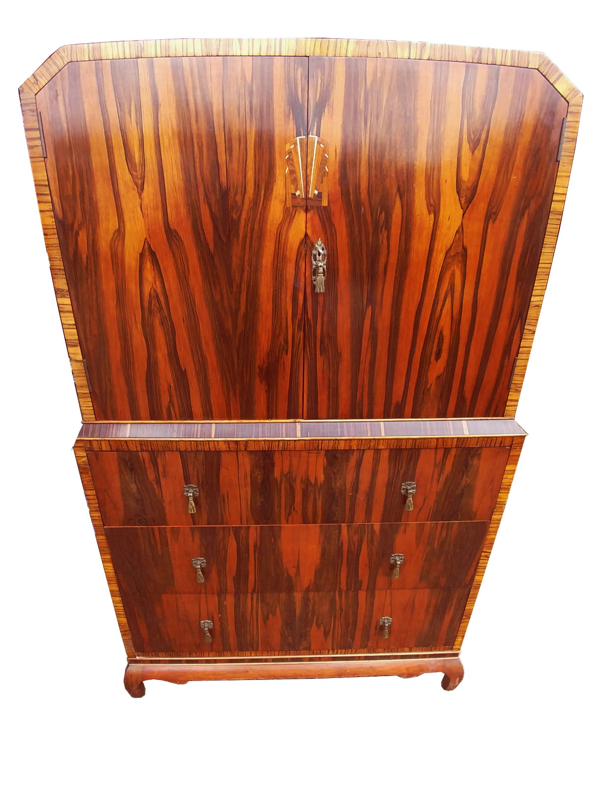 Art Deco Calamandar Macassar Tallboy Cabinet