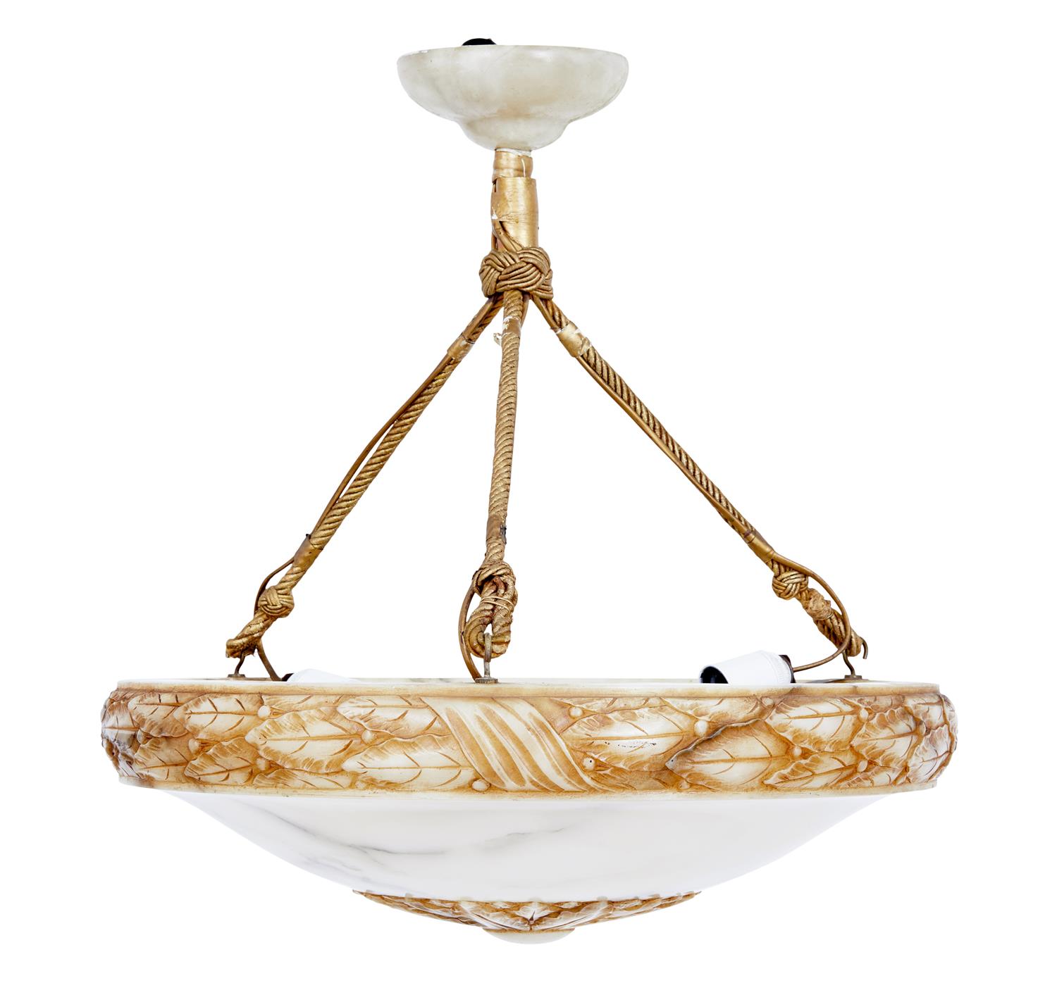 Art Deco Carved Alabaster Ceiling Light (1 of 6)