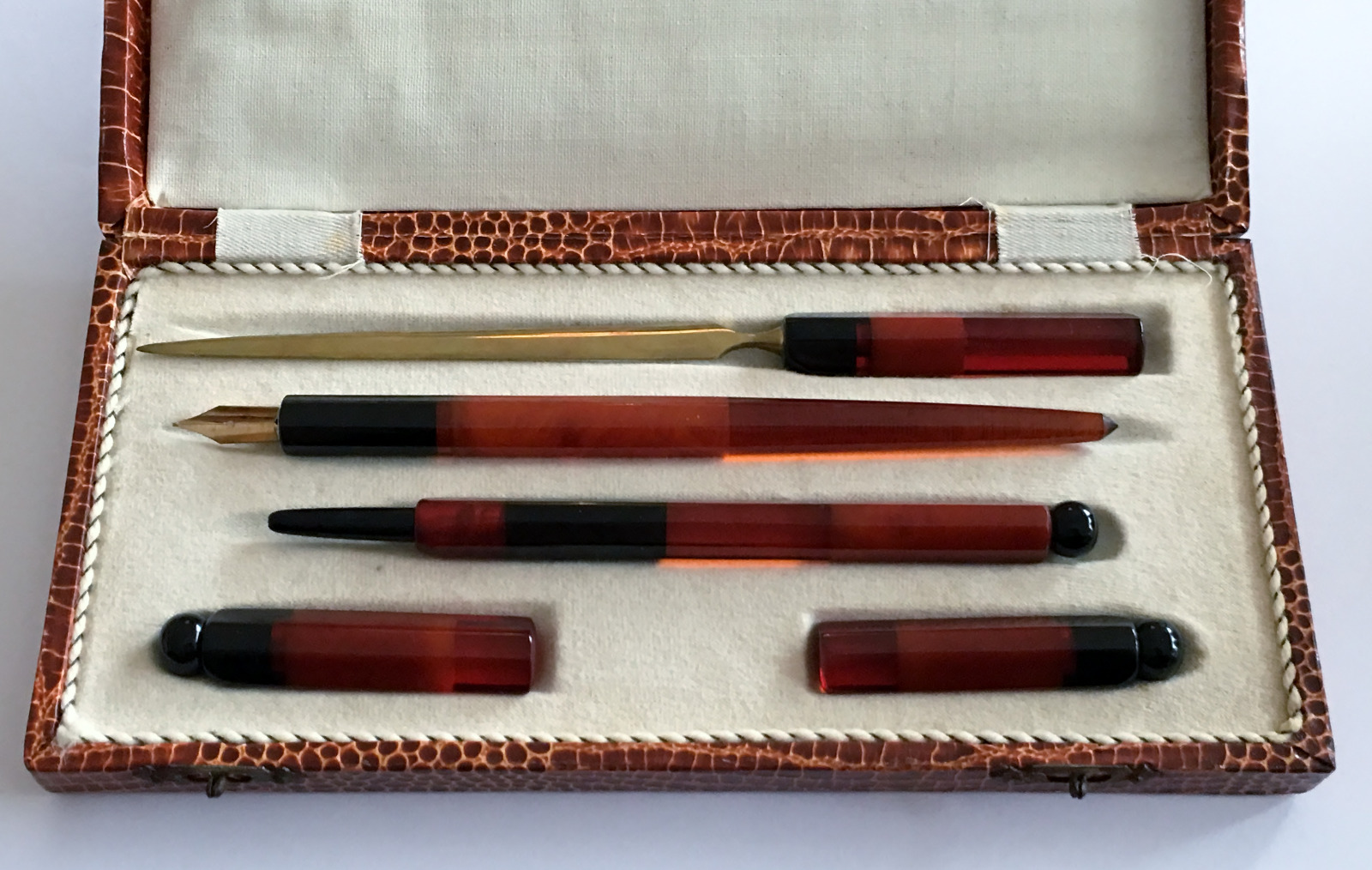 Art Deco Cased Bakelite / Catalin Writing Set (Dip Pen & Propelling Pencil)