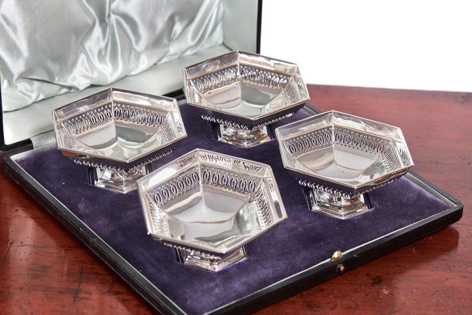Art Deco Cased Set 4 Silver Bon Bon Dishes Maker Walker & Hall
