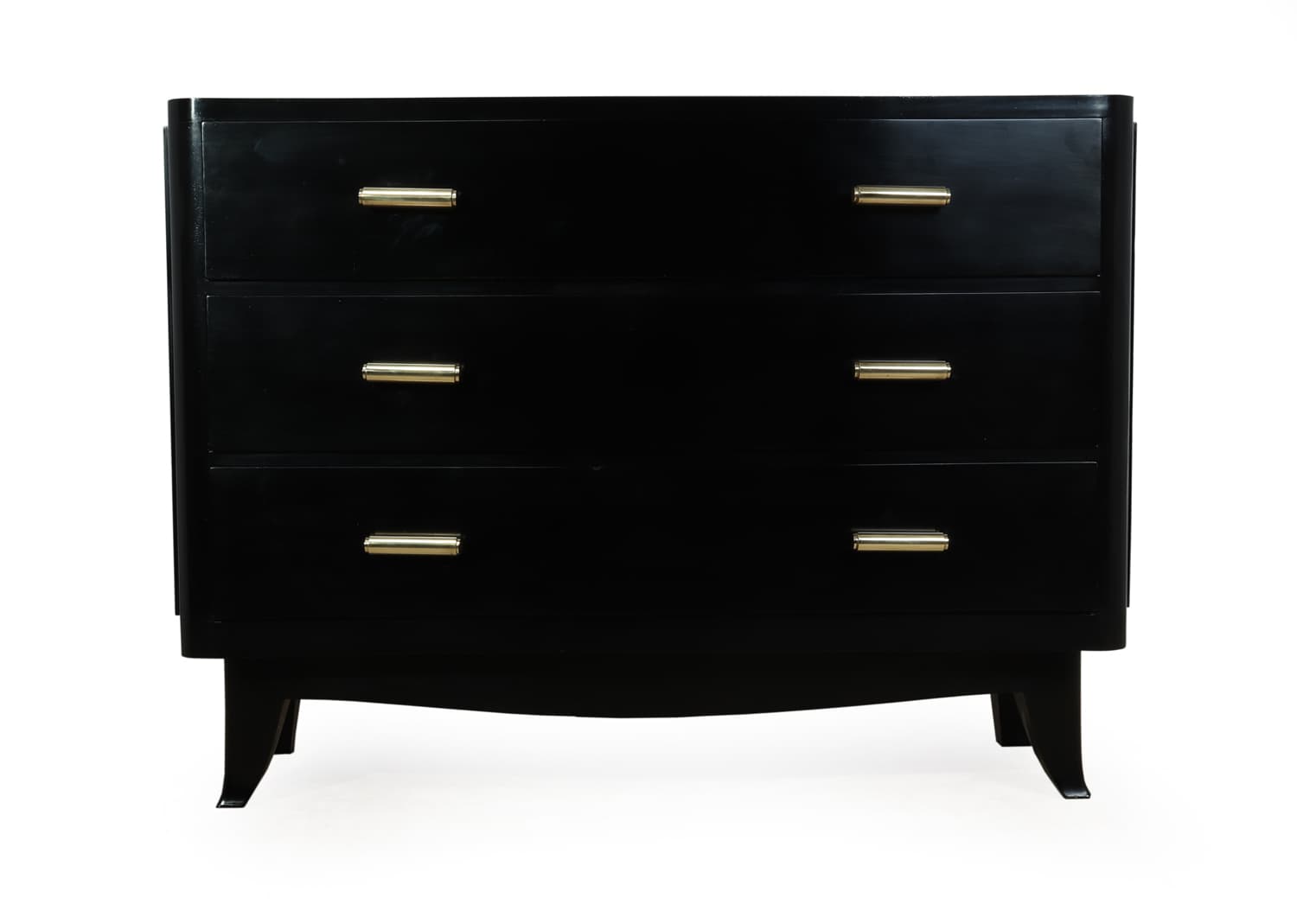 Art Deco Chest in Black Lacquer with Bronze Handles