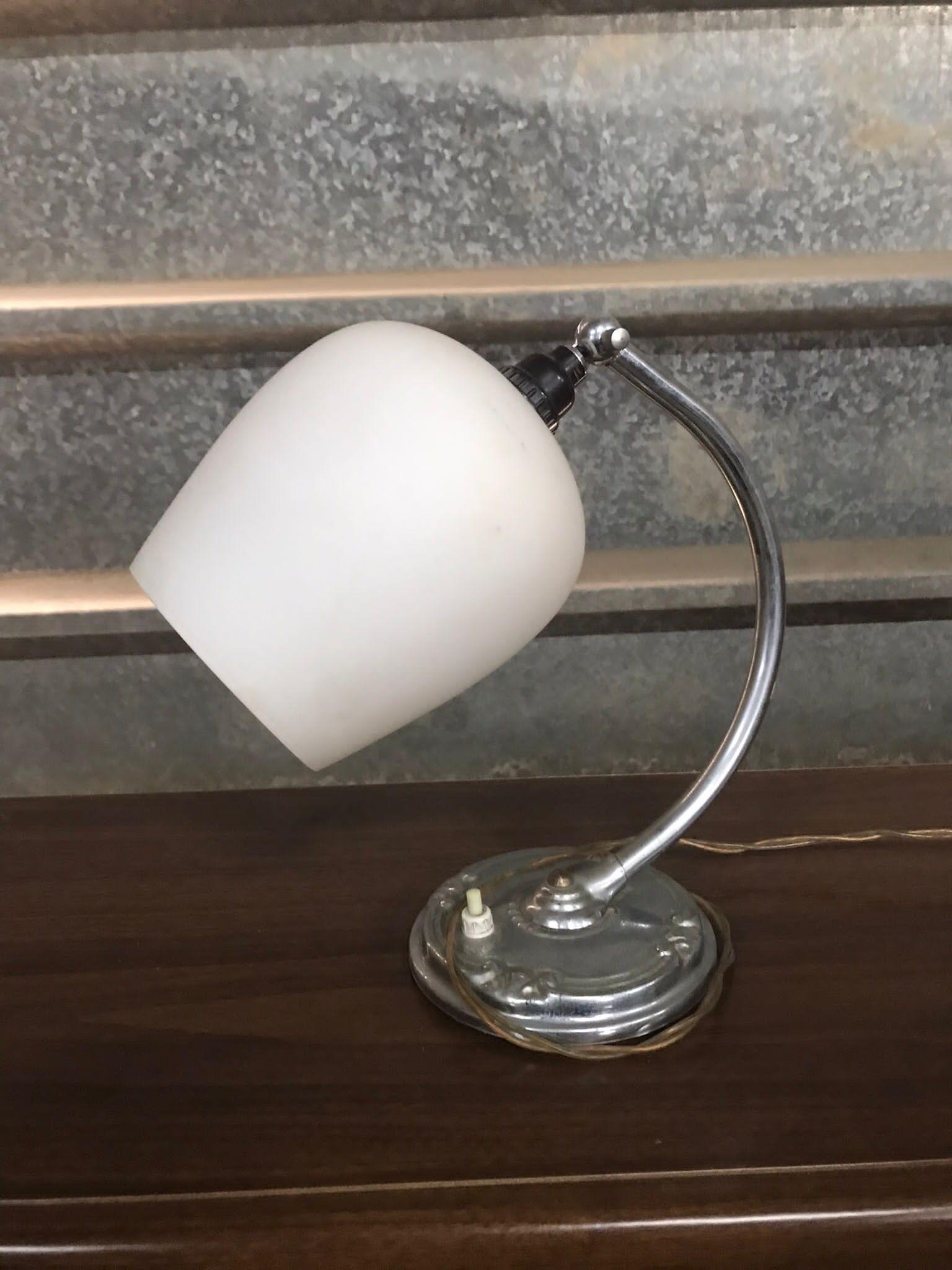 Art Deco Chrome Adjustable Lamp with Opaline Shade