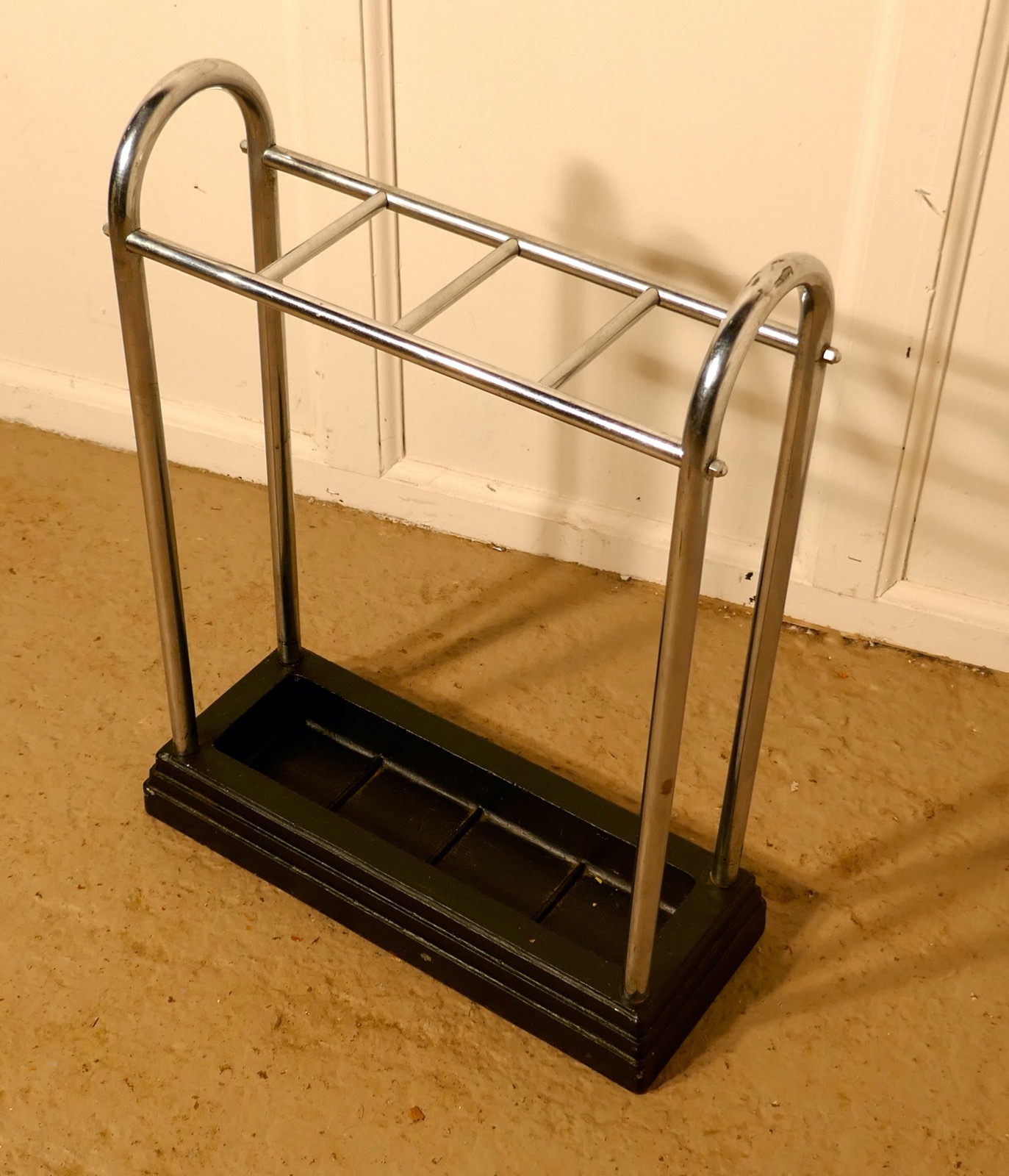 Art Deco Chrome & Cast Iron Stick Stand or Umbrella Stand