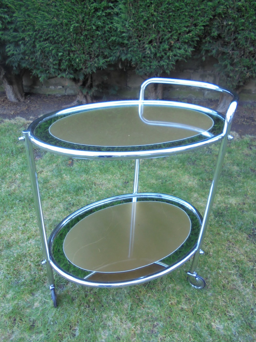 Art Deco Chrome & Mirrored Cocktail Drinks Trolley