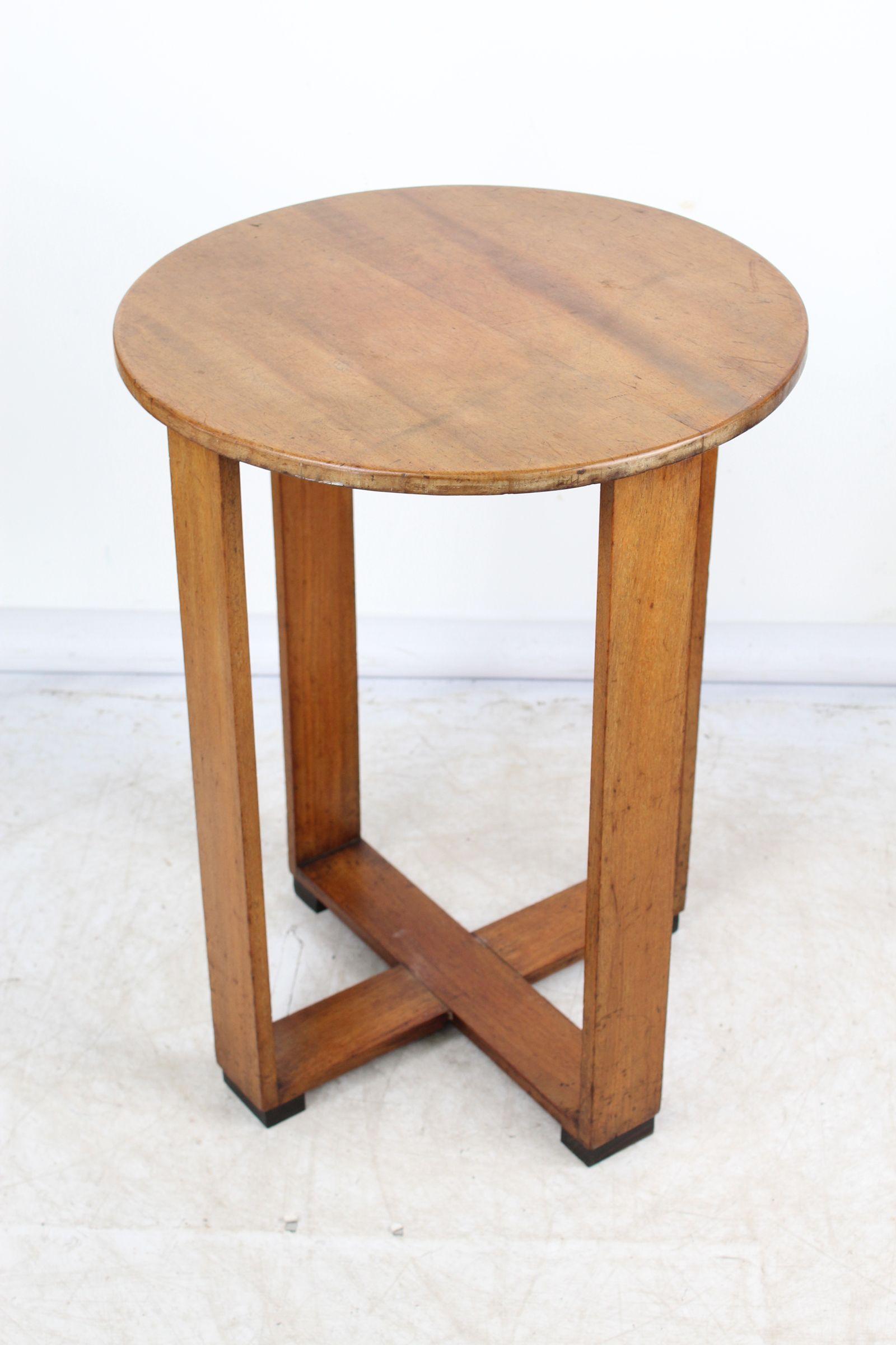 Art Deco Circular Walnut Side Table / Lamp Table