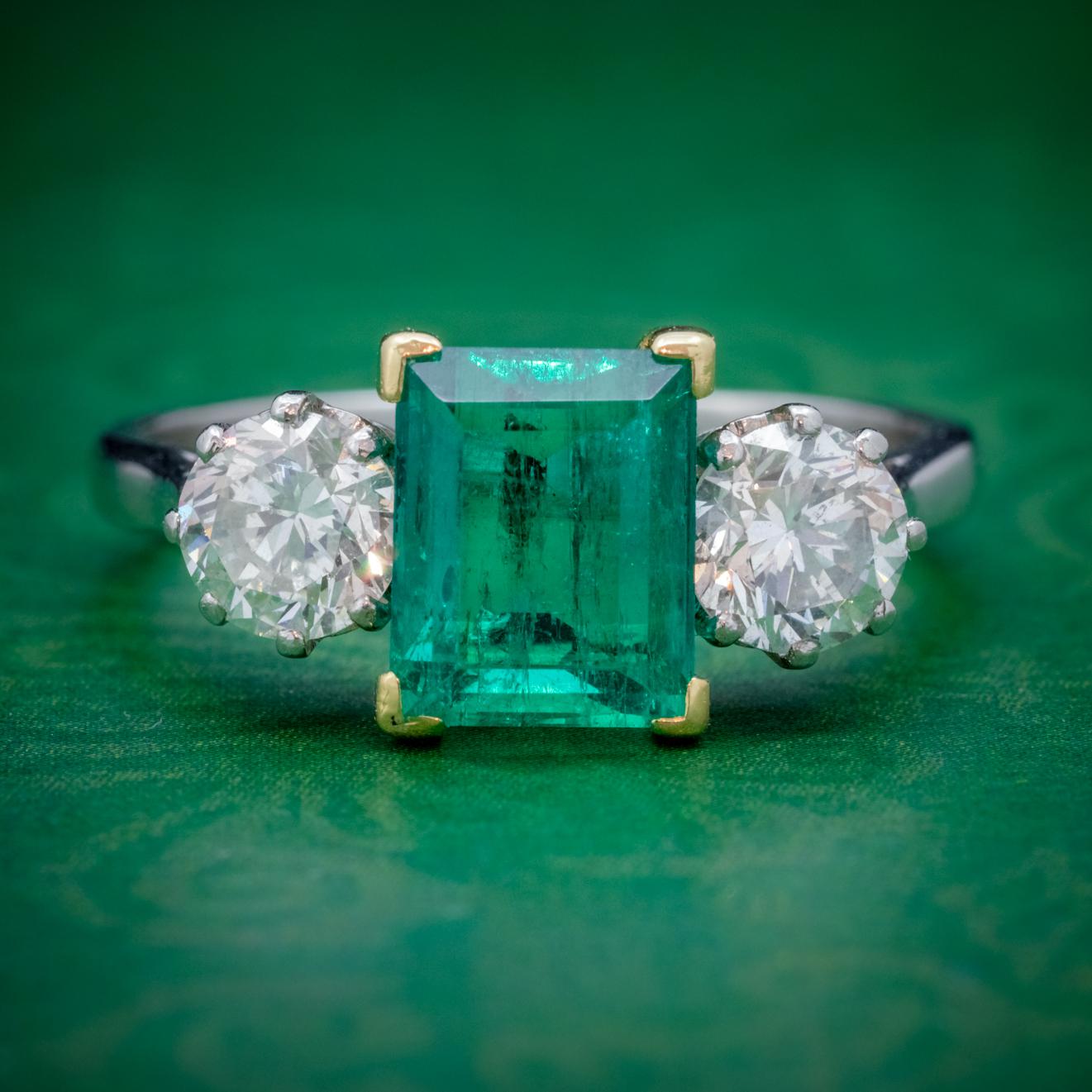 Art Deco Colombian Emerald Diamond Trilogy Ring Platinum 18ct Gold 2.55ct Emerald With Cert