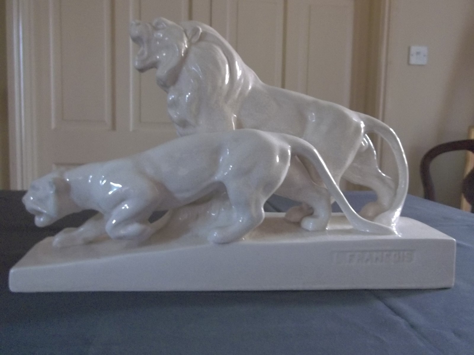 Art Deco Crackle Glaze Lion & Lioness Group