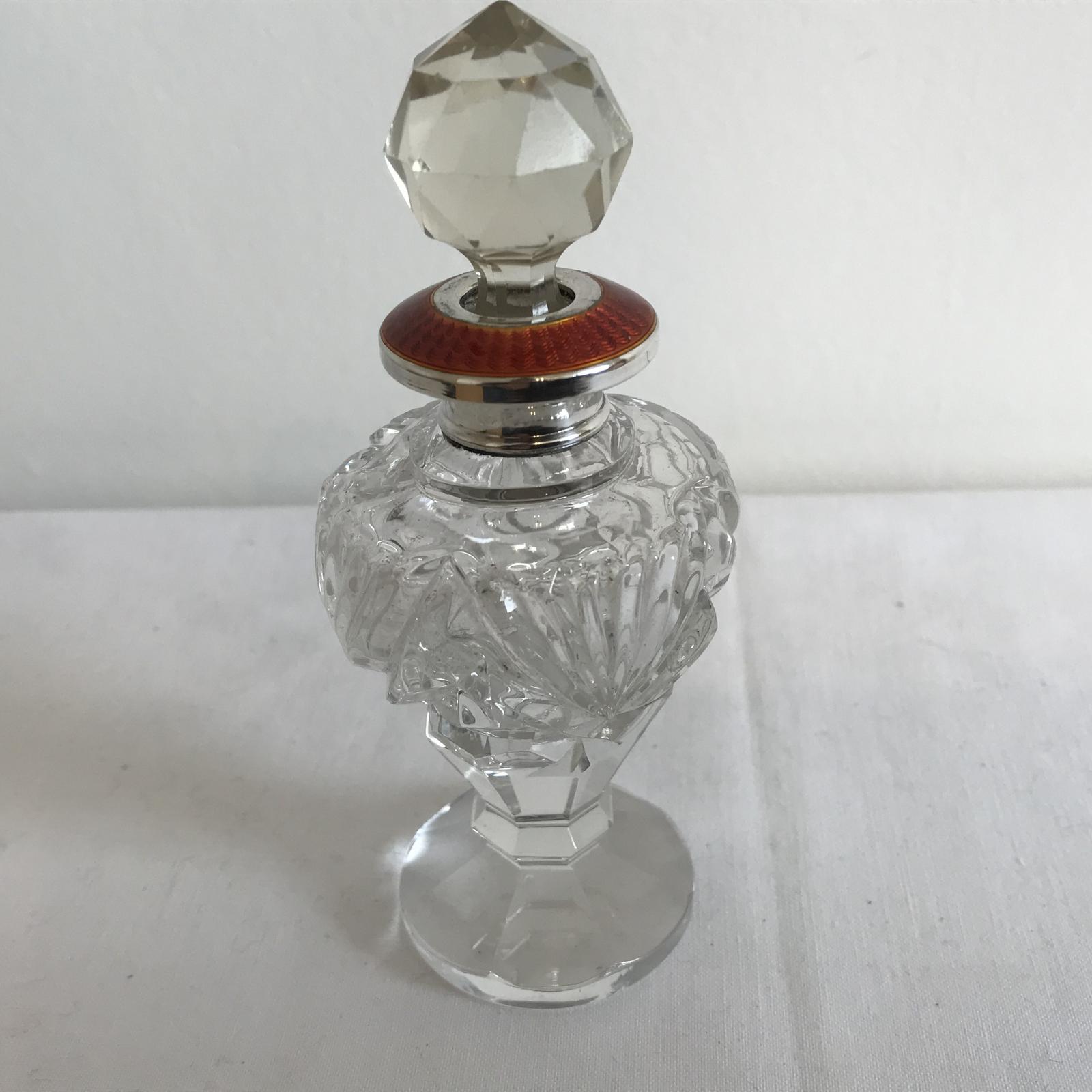 Art Deco Crystal & Silver Perfume Bottle, London 1929