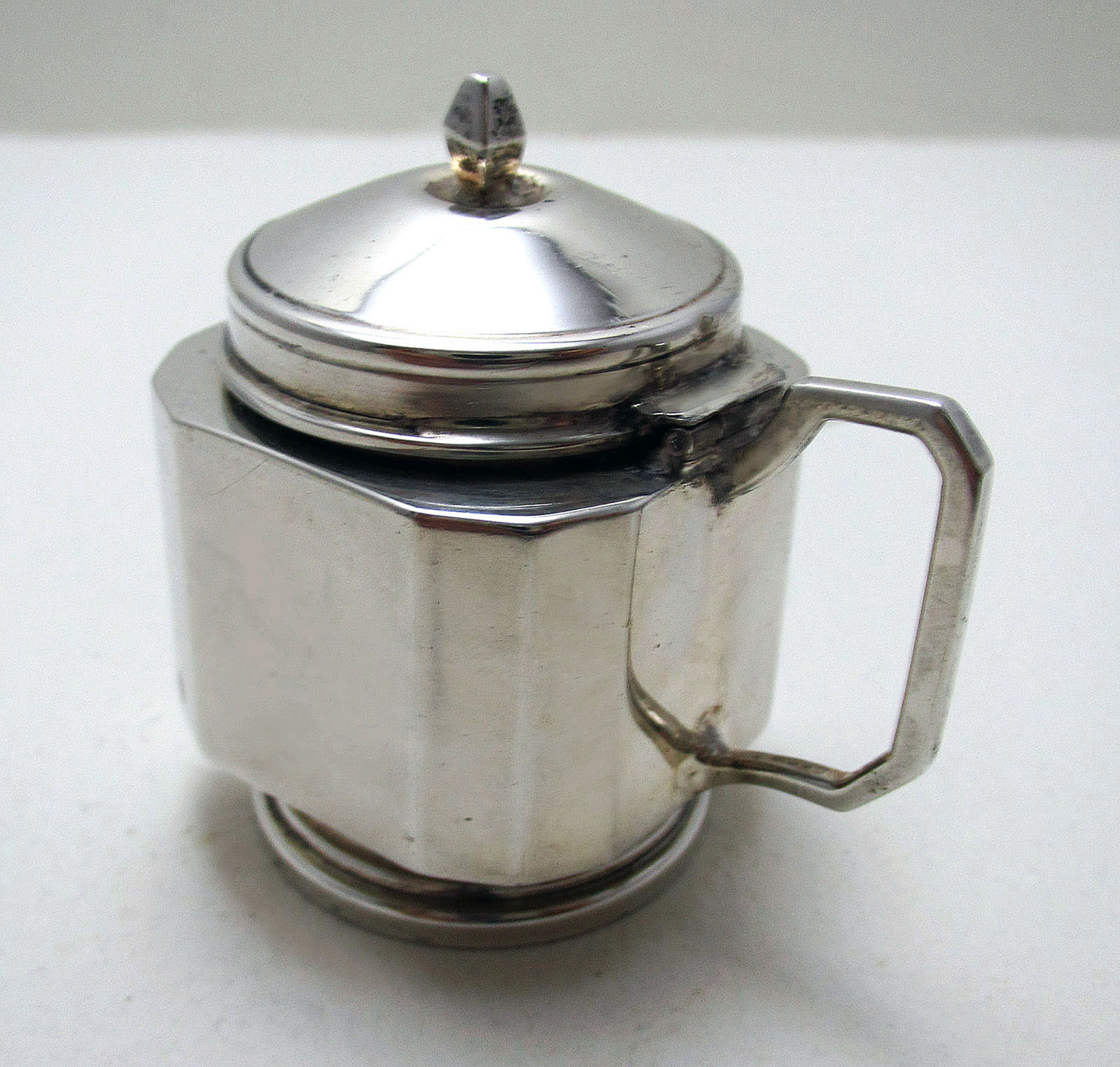 Art Deco Cube Form Solid Sterling Silver Mustard Pot Cruet. English Birmingham Hallmarked 1934