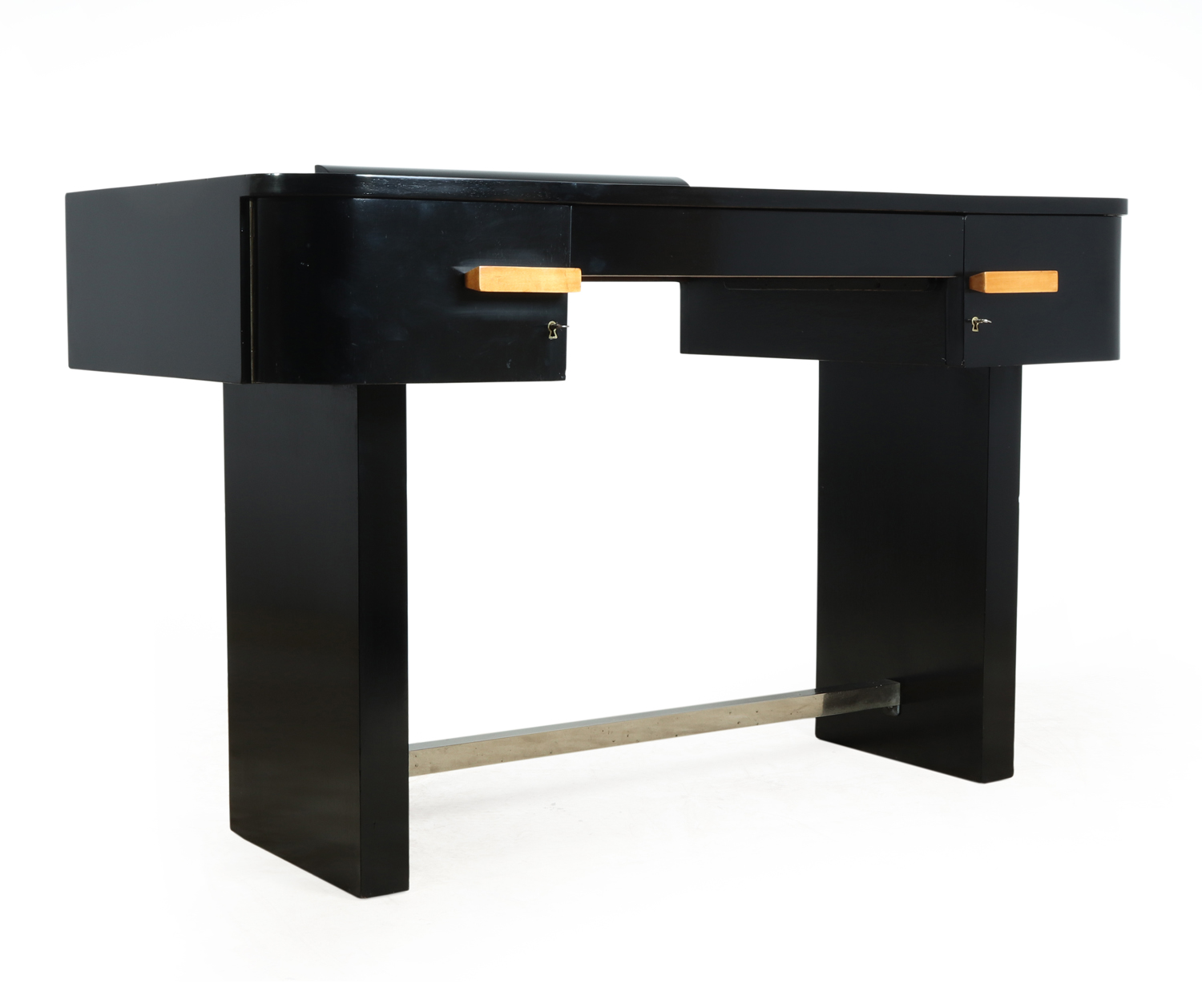 Art Deco Desk Piano Lacquer Black Finish with Leather Inset Top