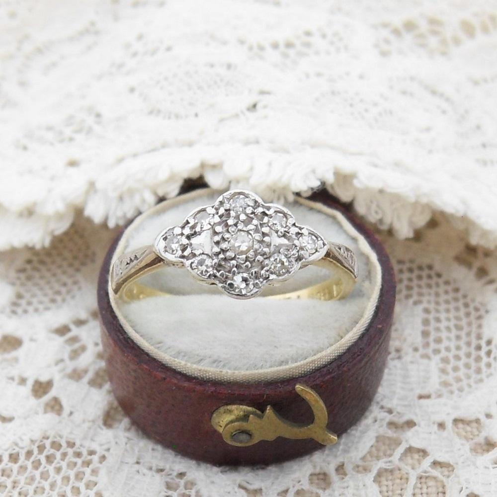 Art Deco Diamond Cluster Ring Marked 18ct & Plat Size O 1/2