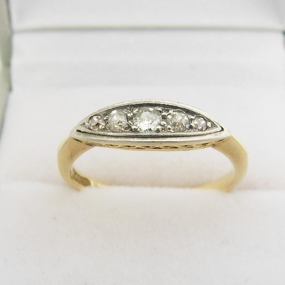 Art Deco Diamond Set Boat Shaped Ring Marked 18ct PD Size N