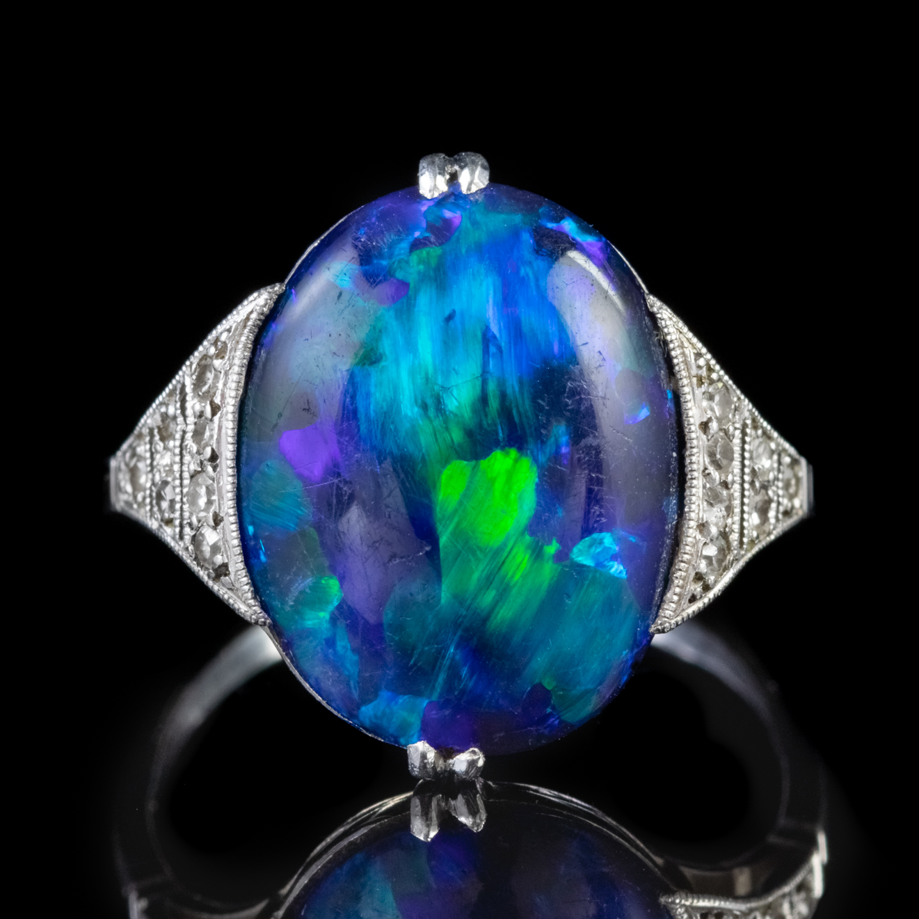 Art Deco Diamond Set Natural Black Opal 8ct Platinum c.1920