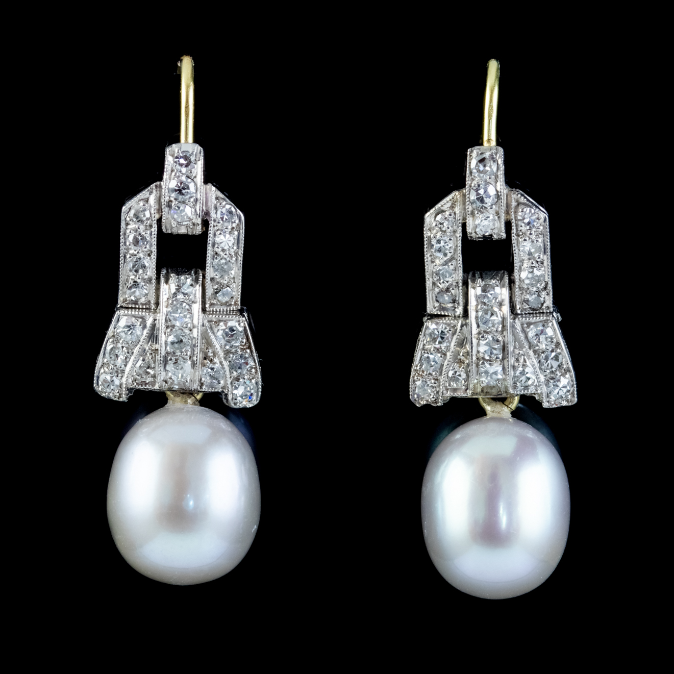 Art Deco Diamond Silver Pearl Drop Earrings 18ct Gold c.1920