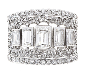 Art Deco Emerald Cut Diamond 5 Stone Cluster Ring c1920