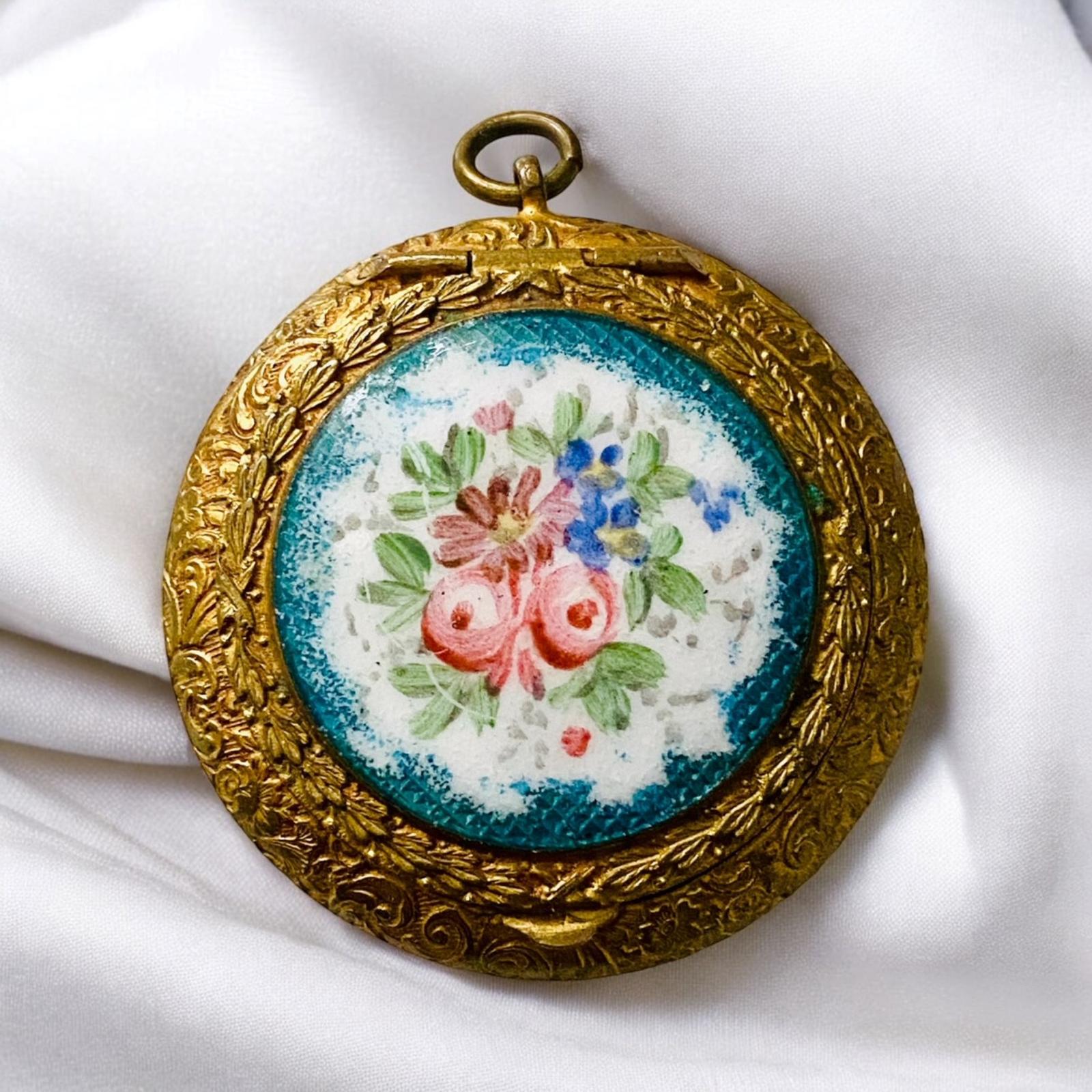 Art Deco Enamel Pendant Powder Compact c.1930 (1 of 8)