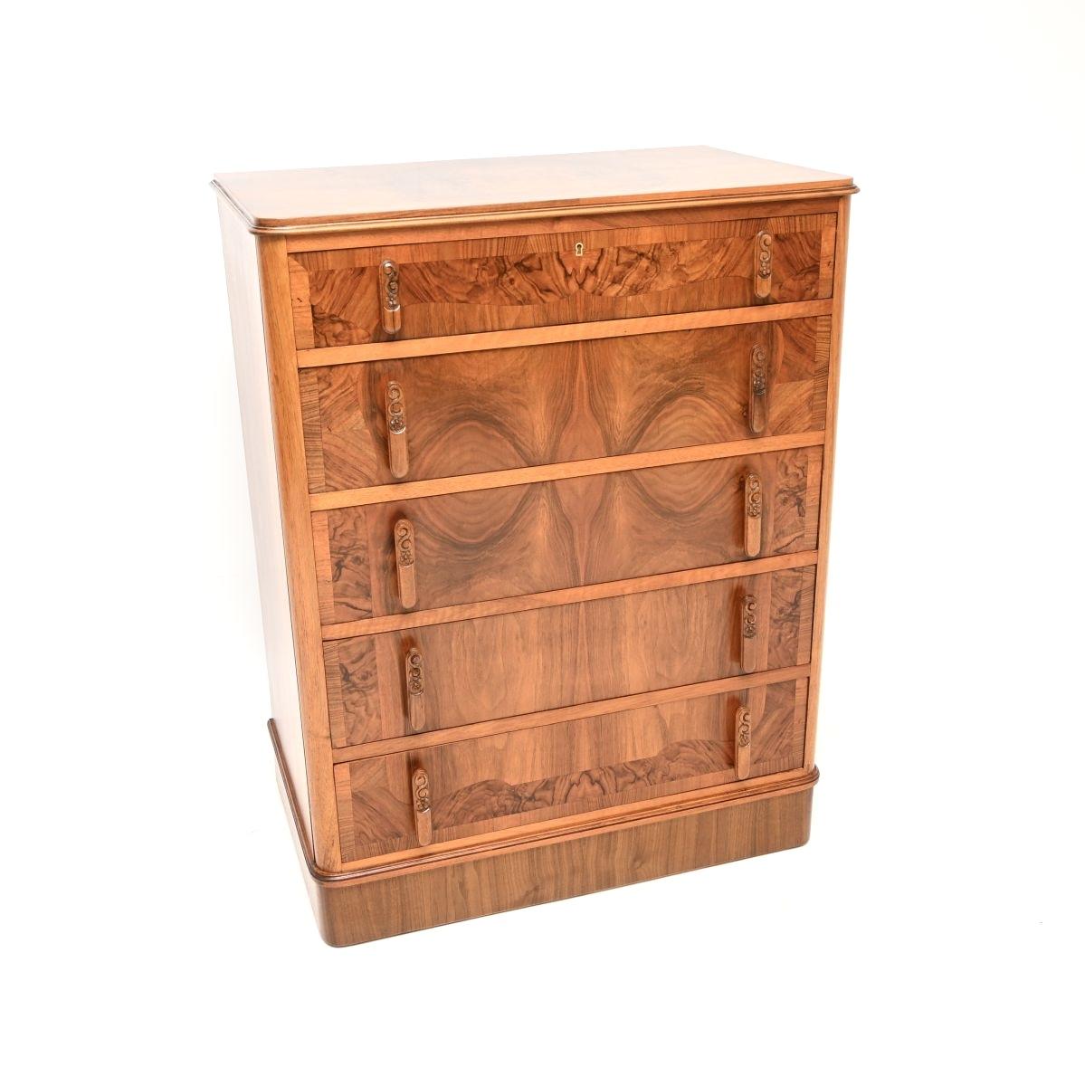 This Art Deco Figured Walnut Chest of Drawers is located in Greater London, United Kingdom