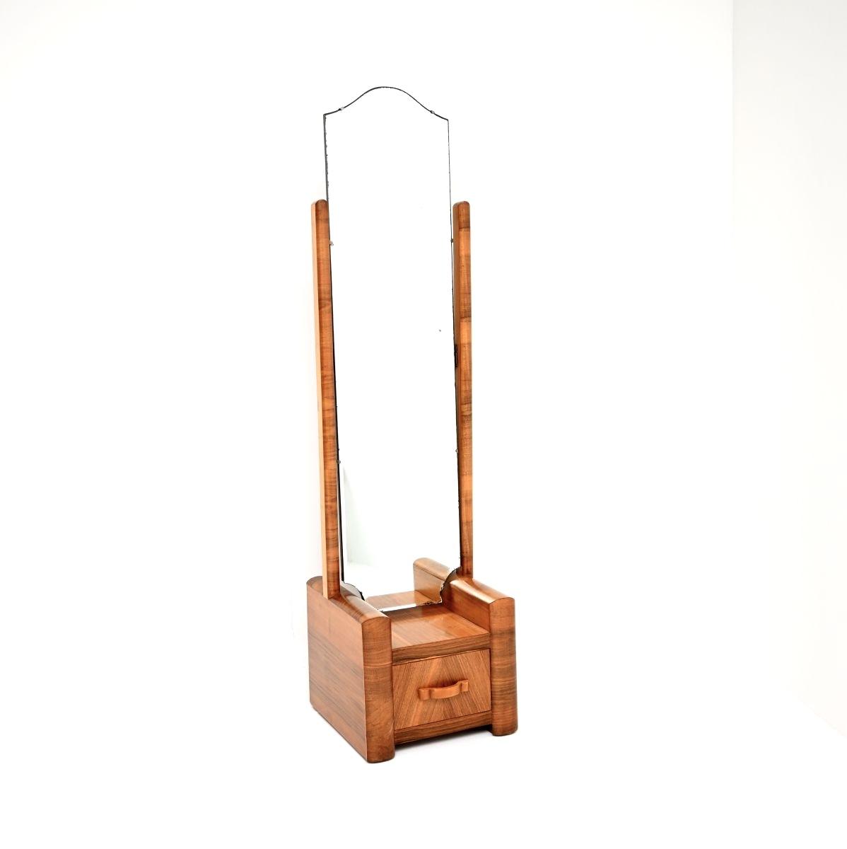 A superb original Art Deco figured walnut cheval floor mirror. This was made in England, it dates from the 1930s.