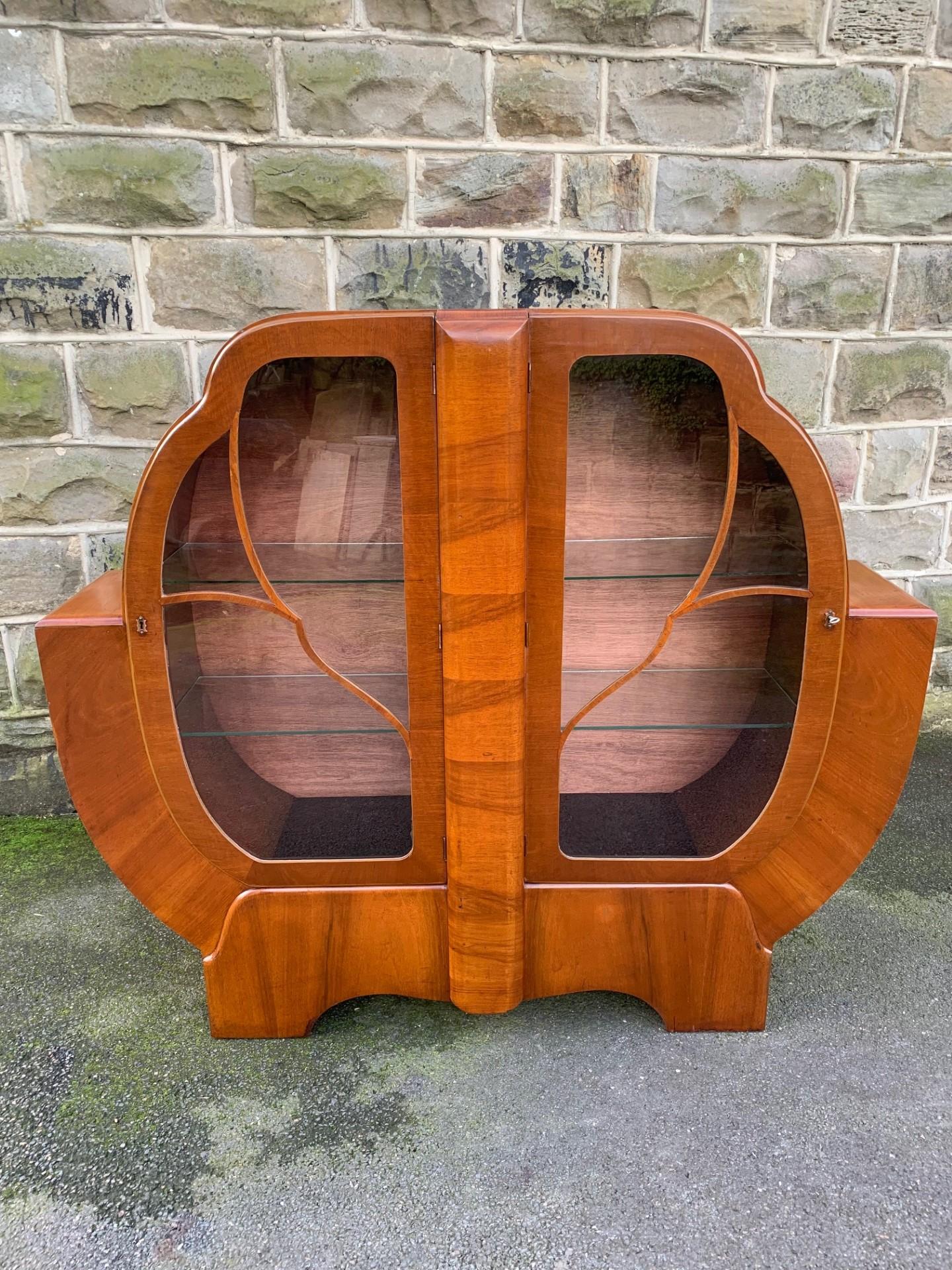 Art Deco Figured Walnut Display Cabinet